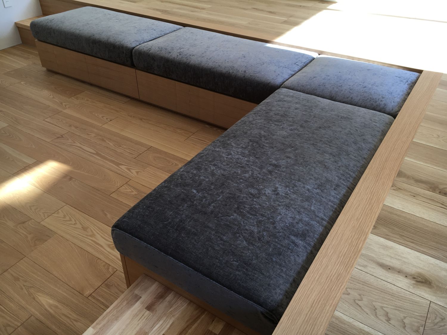 リビングとダイニングの段差を生かして製作したベンチソファです。