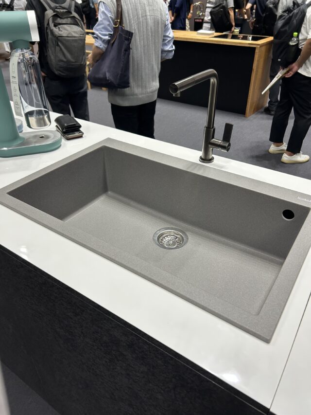 日本でも展開がはじまったイタリアのSMEGのシンクはグラニット樹脂とステンレスをつかったもの。↓