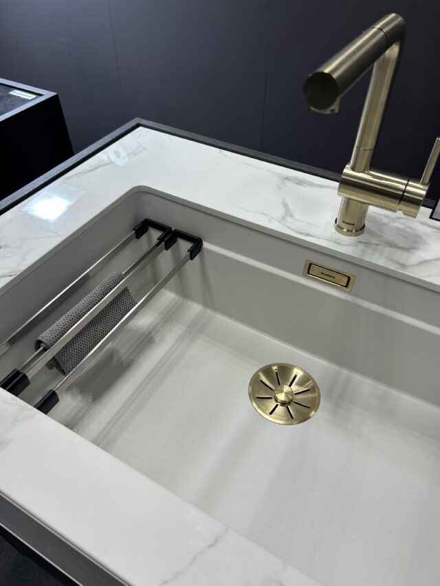 カラーも豊富で石英(クオーツサイト)が80%使用されたシンクは高い高度と耐汚染性があります。↓