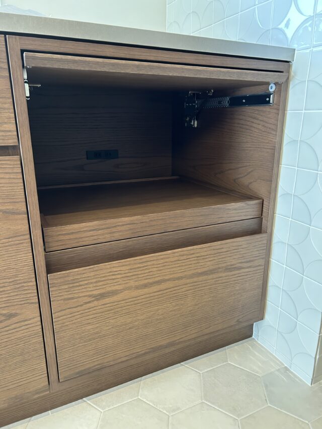 キッチン全体の雰囲気だけではなく、家具のように細かい部分までとことんこだわって作ることがとても得意です。