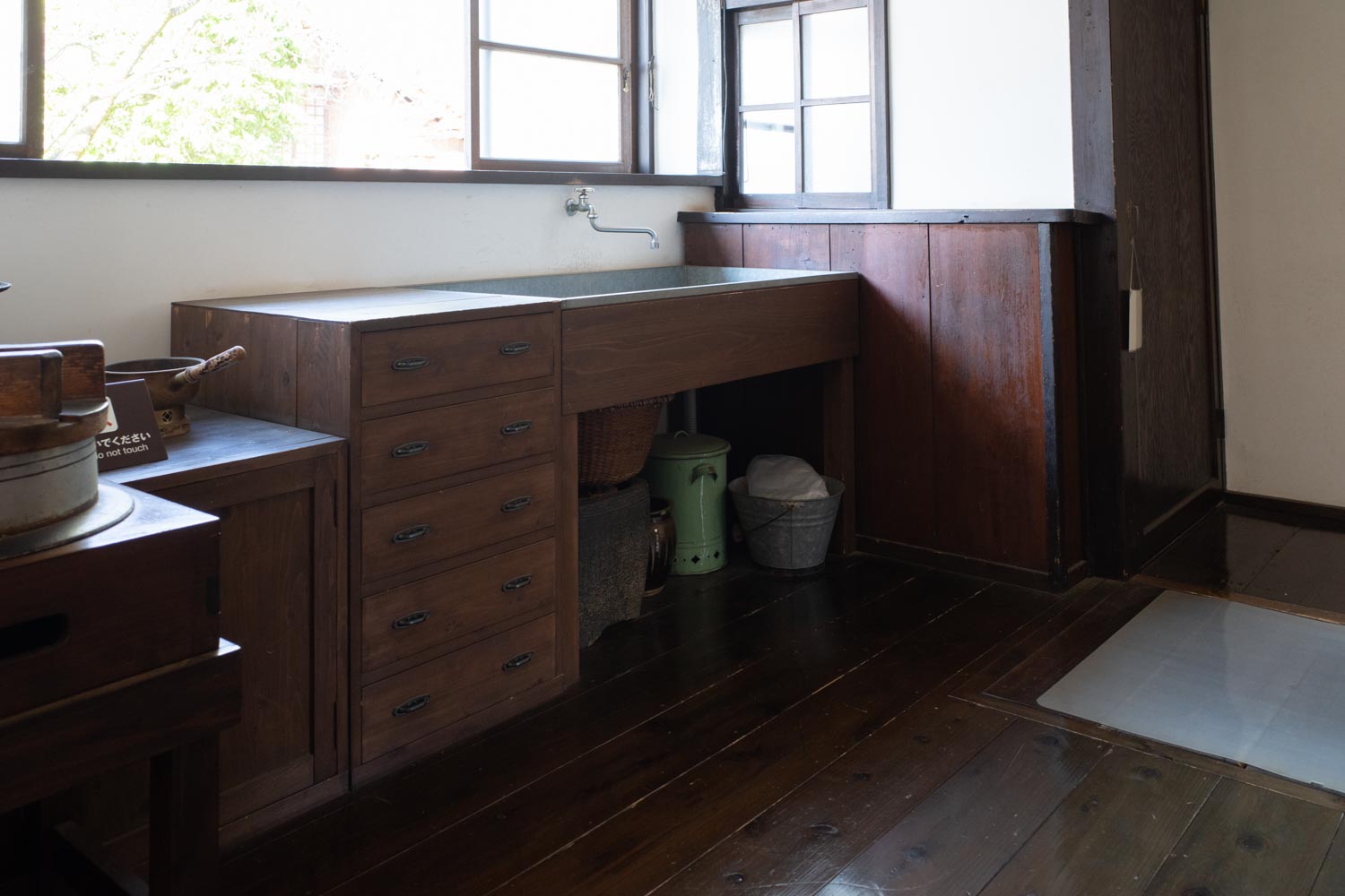 ステンレスシンクと木部の間にわずかな底目地が施されていてビックリ。