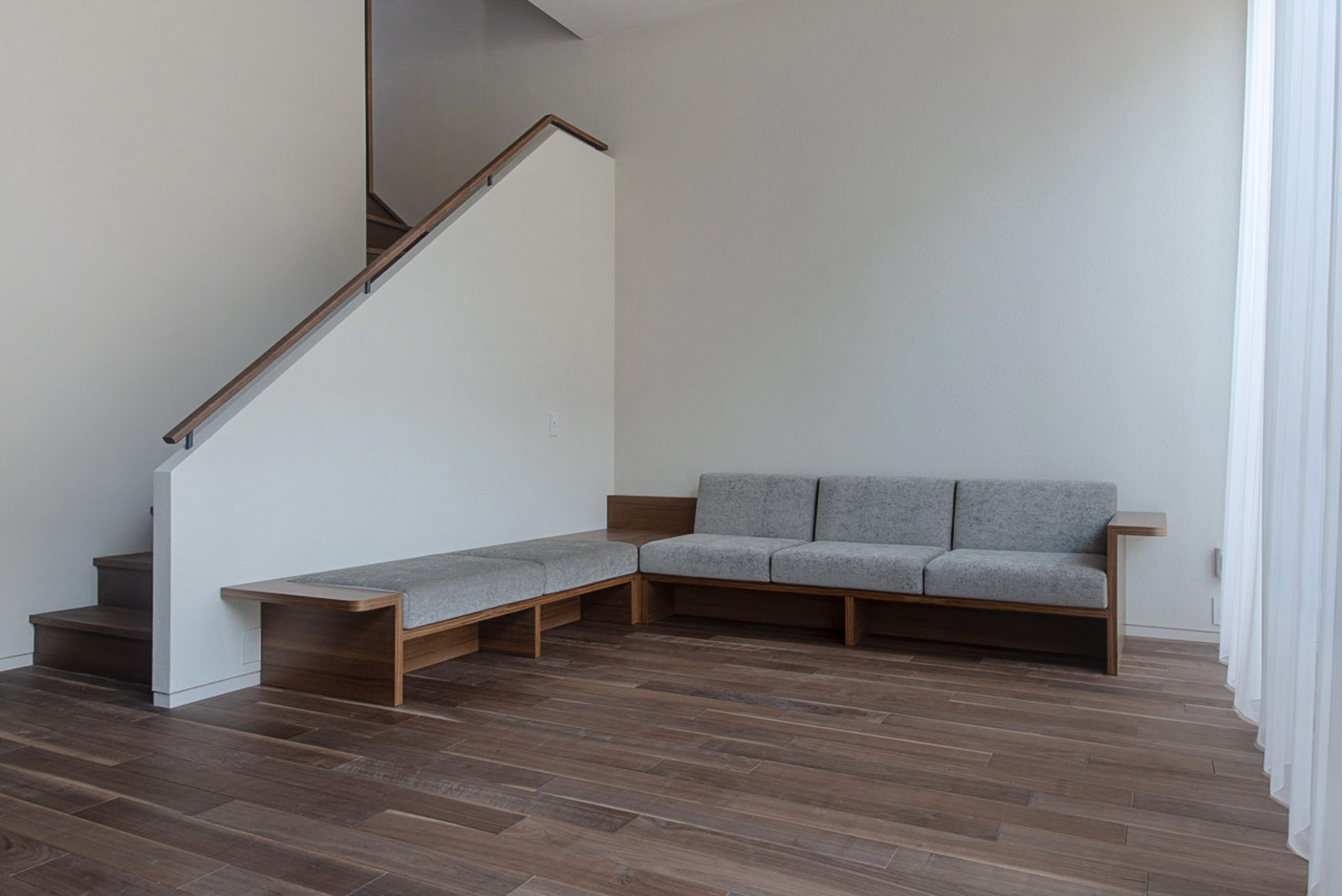 オーダー家具 大田区A邸 オーダーソファ 建築設計事務所様との協業によるコーナータイプのオーダーソファです。一律に背クッションを配置せず、背クッションの無いベンチタイプも併用することで、様々な使い方が可能です。 サイズ:W2965×D2690×H710クッション:ファブリックカバーリング フレーム:チーク突板建築設計:小堀哲夫建築設計事務所 納品事例一覧へ 一覧へ戻る